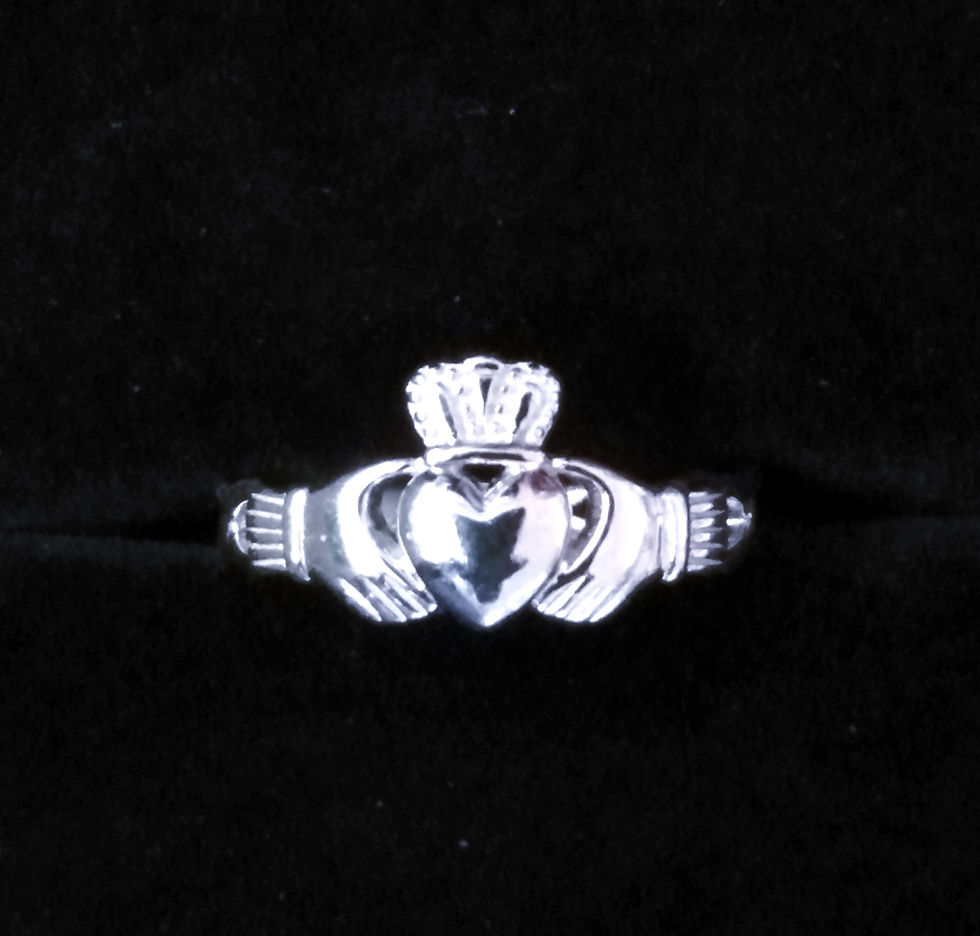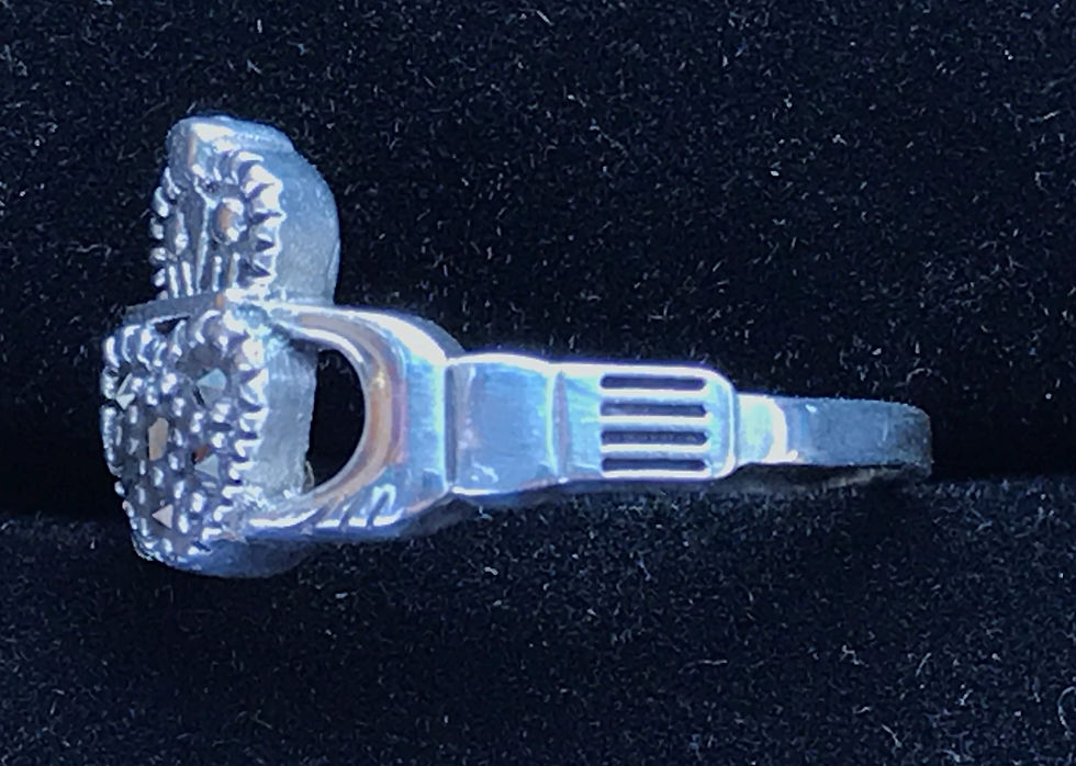 Place the ring on the third finger of your left hand with the heart pointing outwards,