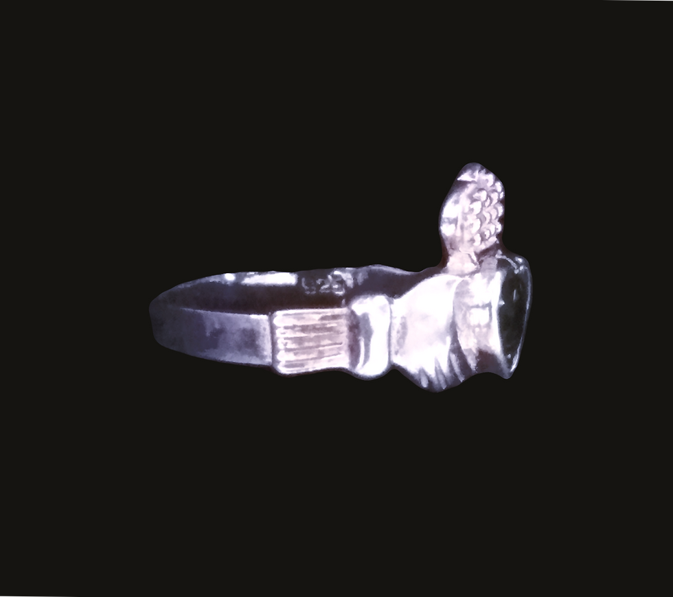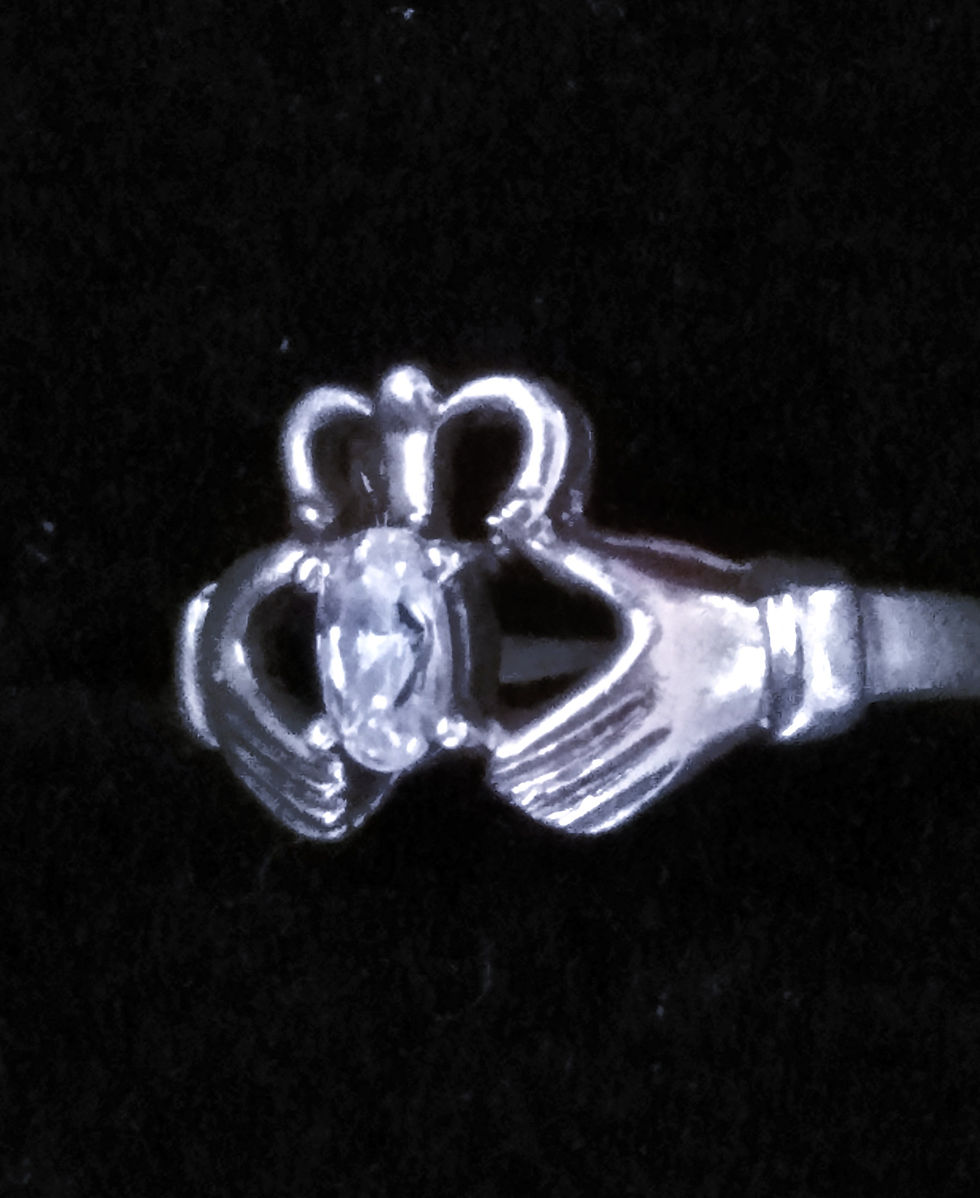 Place the ring on the third finger of your left hand with the heart pointing outwards,