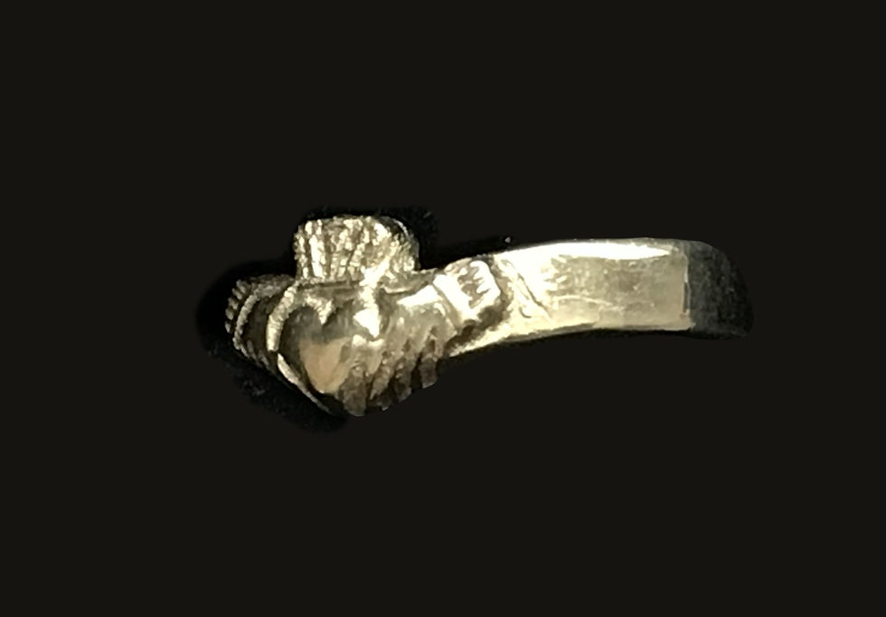 Place the ring on the third finger of your left hand with the heart pointing outwards,